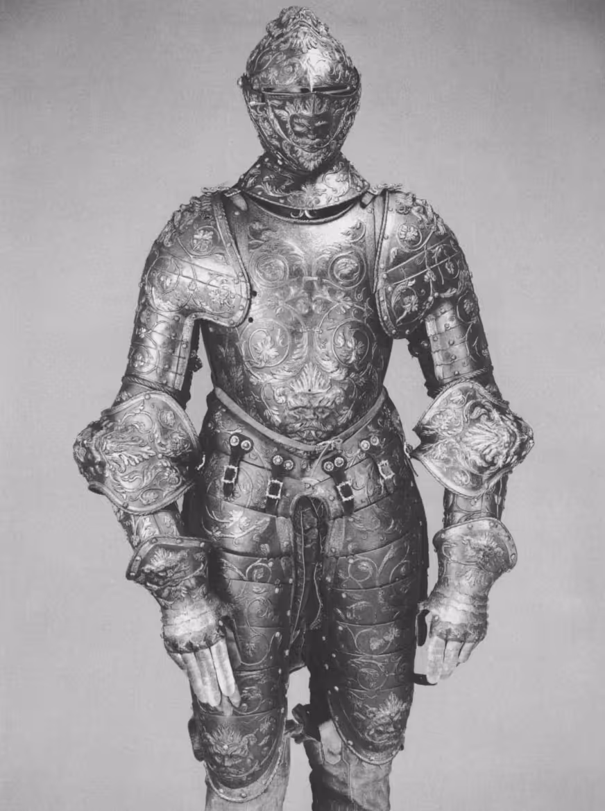 Armor of Henry II of France. Giovan Paolo Negroli. Milan, ca. 1545. Steel and gold. Private collection. Heroic Armor of the Italian Renaissance p. 240.