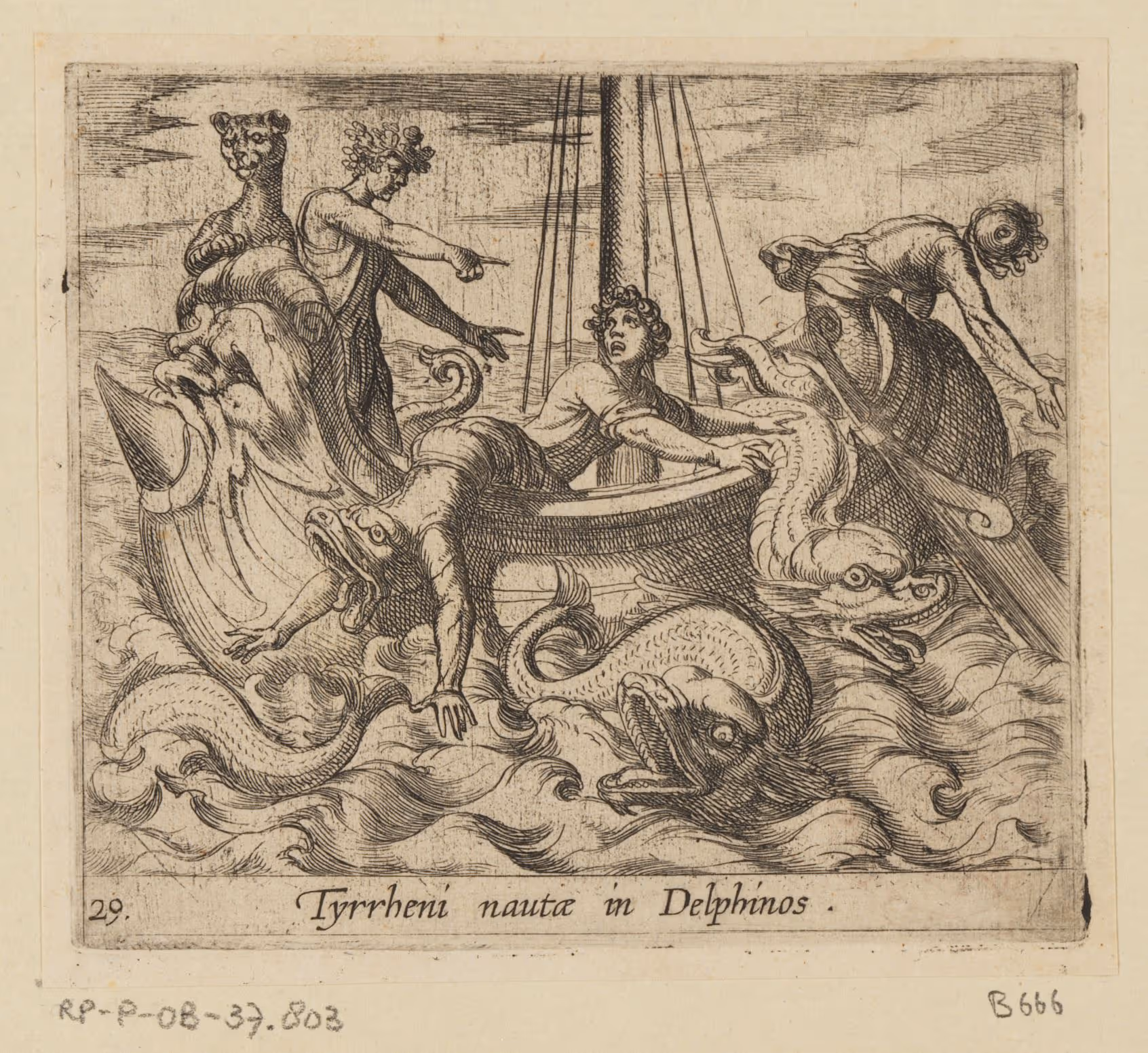 Bacchus verandert zijn ontvoerders in monsters, Antonio Tempesta, 1606.