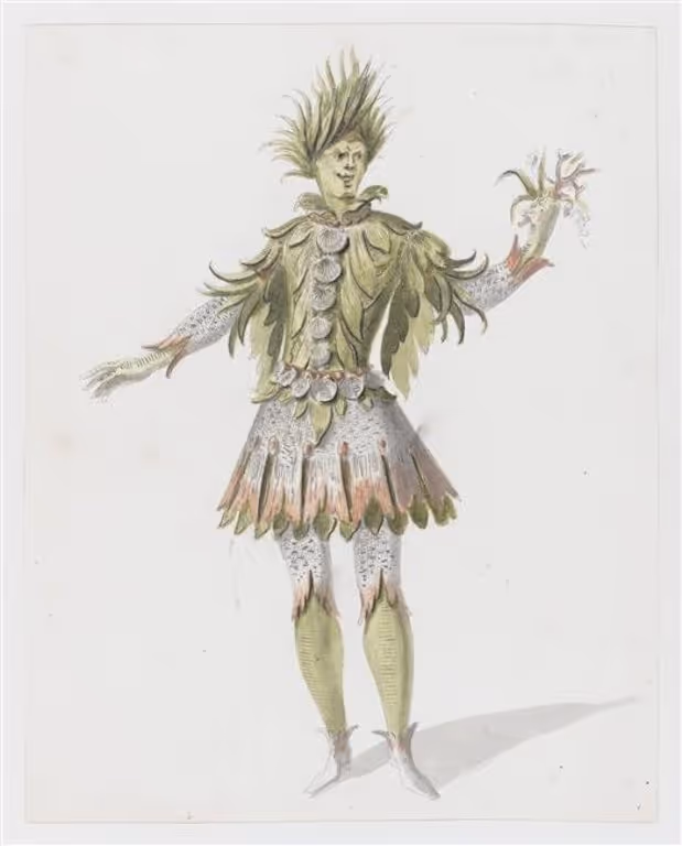 Costume de dieu de fleuve au quatrième acte de la tragédie en musique « Atys ». 1675. Jean I Berain. 1562 DR/ Recto, Département des Arts graphiques, Musée du Louvre.