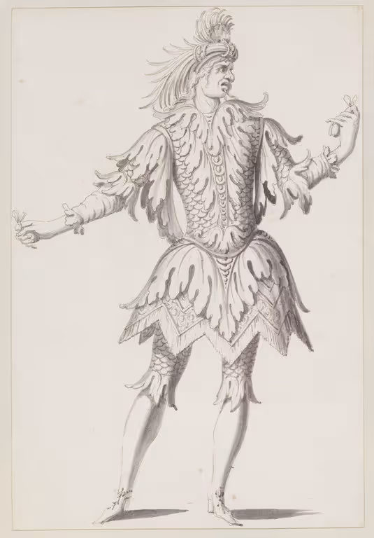 Costume de dieu fleuve pour "Isis". Jean I Berain, copie d’après. 2804 DR/ Recto, Département des Arts graphiques, Musée du Louvre, Paris.