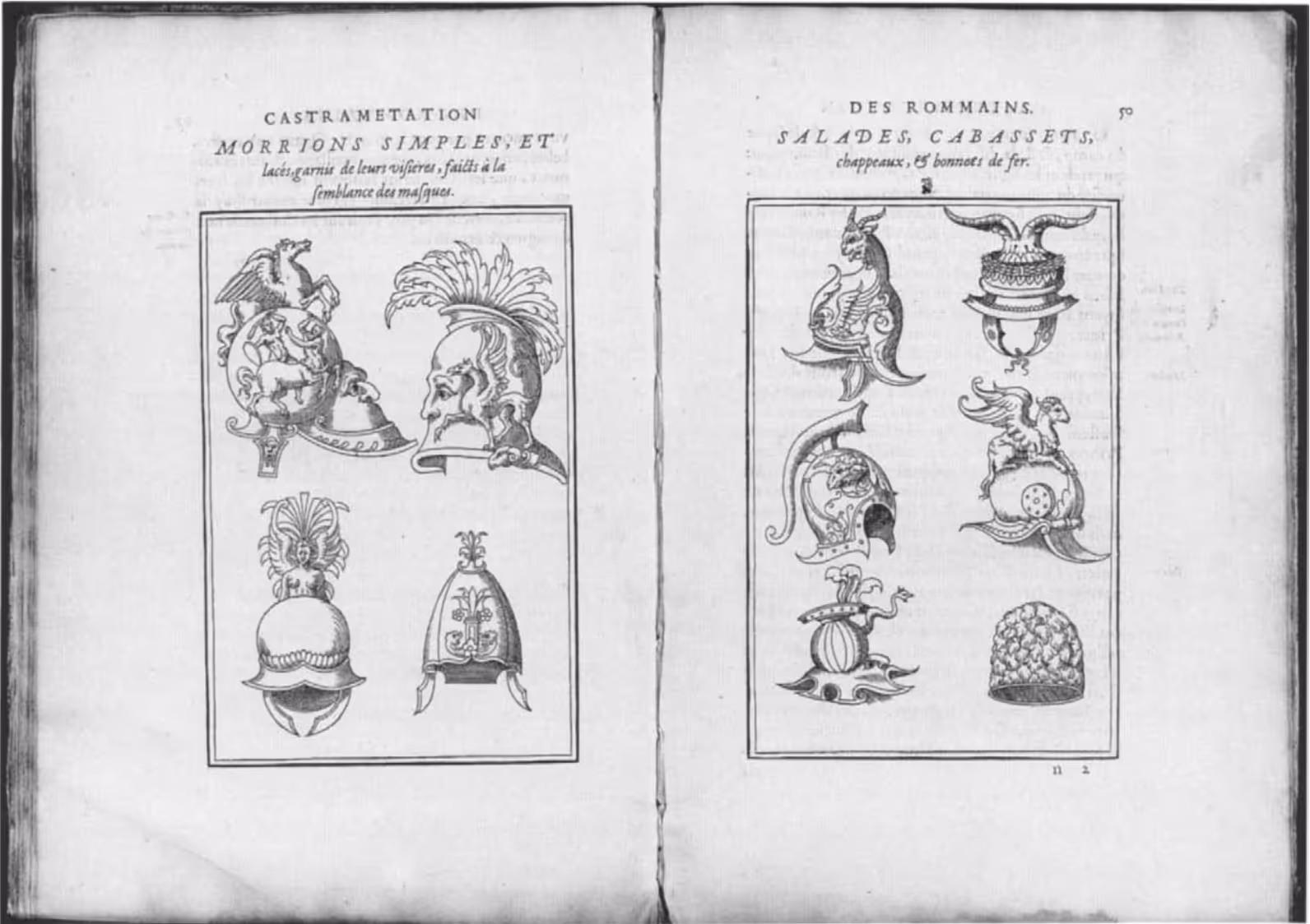 Discours sur la castrametation et discipline militaire des romains. Guillaume Du Choul. Guillaume Rouillé, Lyon, 1555. The Metropolitan Museum of Art; Thomas J’ Watson Library, Jane E. Andrews Fund, in memory of her husband, William Loring Andrews, 1942. Heroic Armor of the Italian Renaissance p. 111.