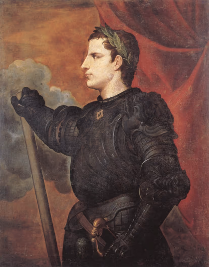 Emperor Claudius. Bernardino camp, after Titian. Milan, ca. 1561. Oil on canvas. Museo e Galleria Nazionale di Capodimonte, Naples (Q 1159) Heroic Armor of the Italian Renaissance p. 149.