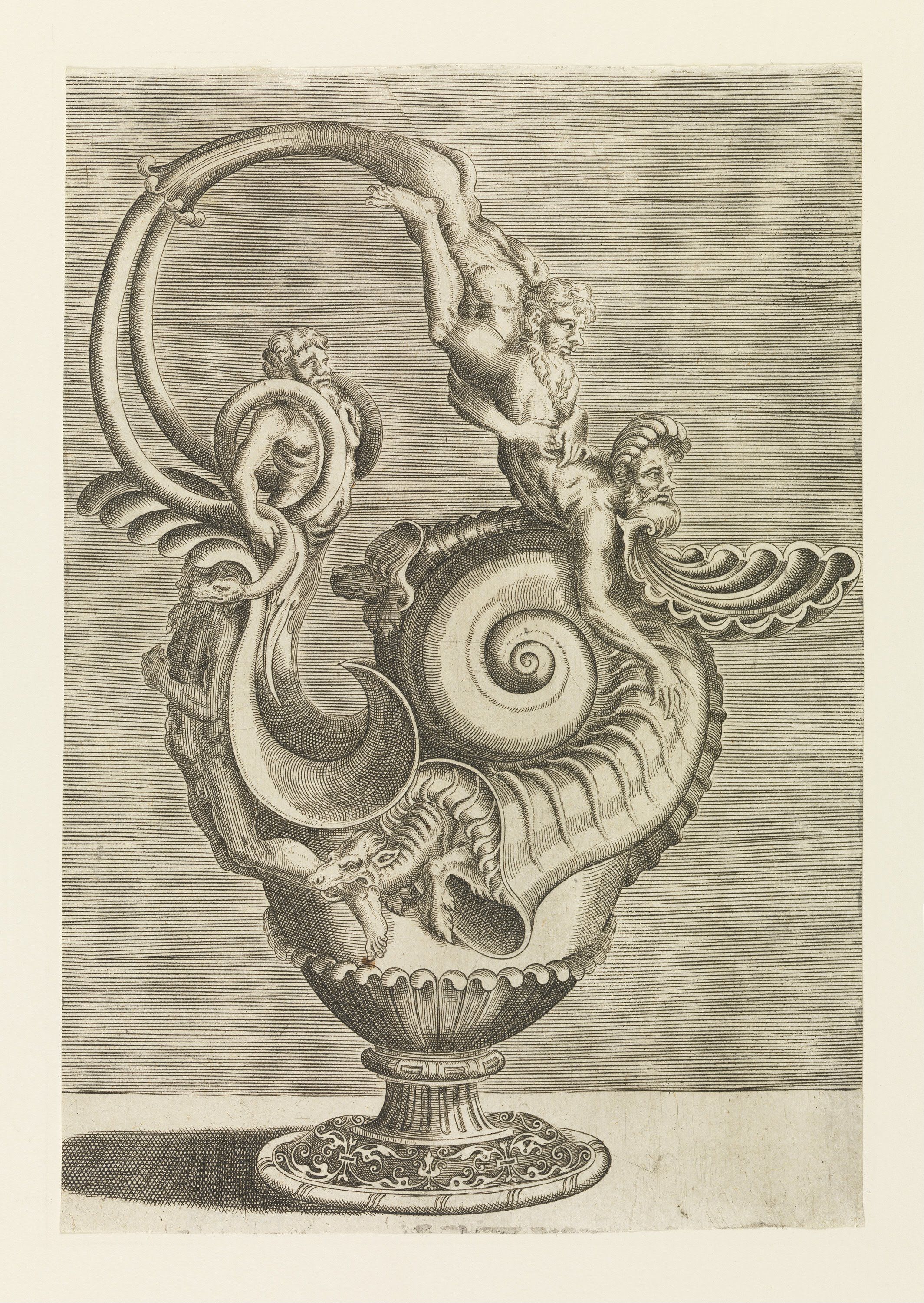 Kan in de vorm van een slakkenhuis, met een oor, Balthazar van den Bos, naar Cornelis Floris (II), 1548. Source Rijksmuseum