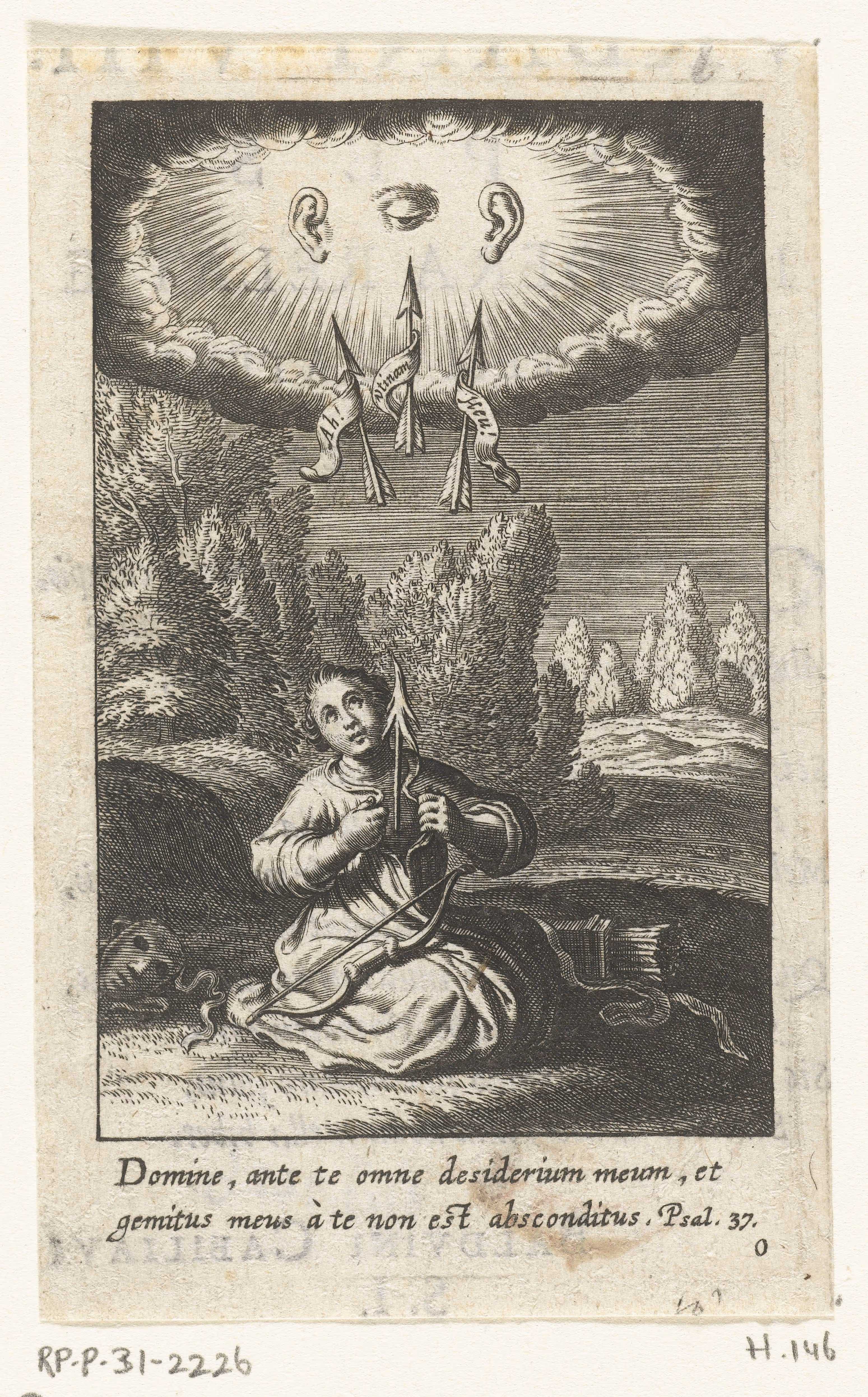 Kind met pijl en boog en alziend oog van God, Boëtius Adamsz. Bolswert, 1624.