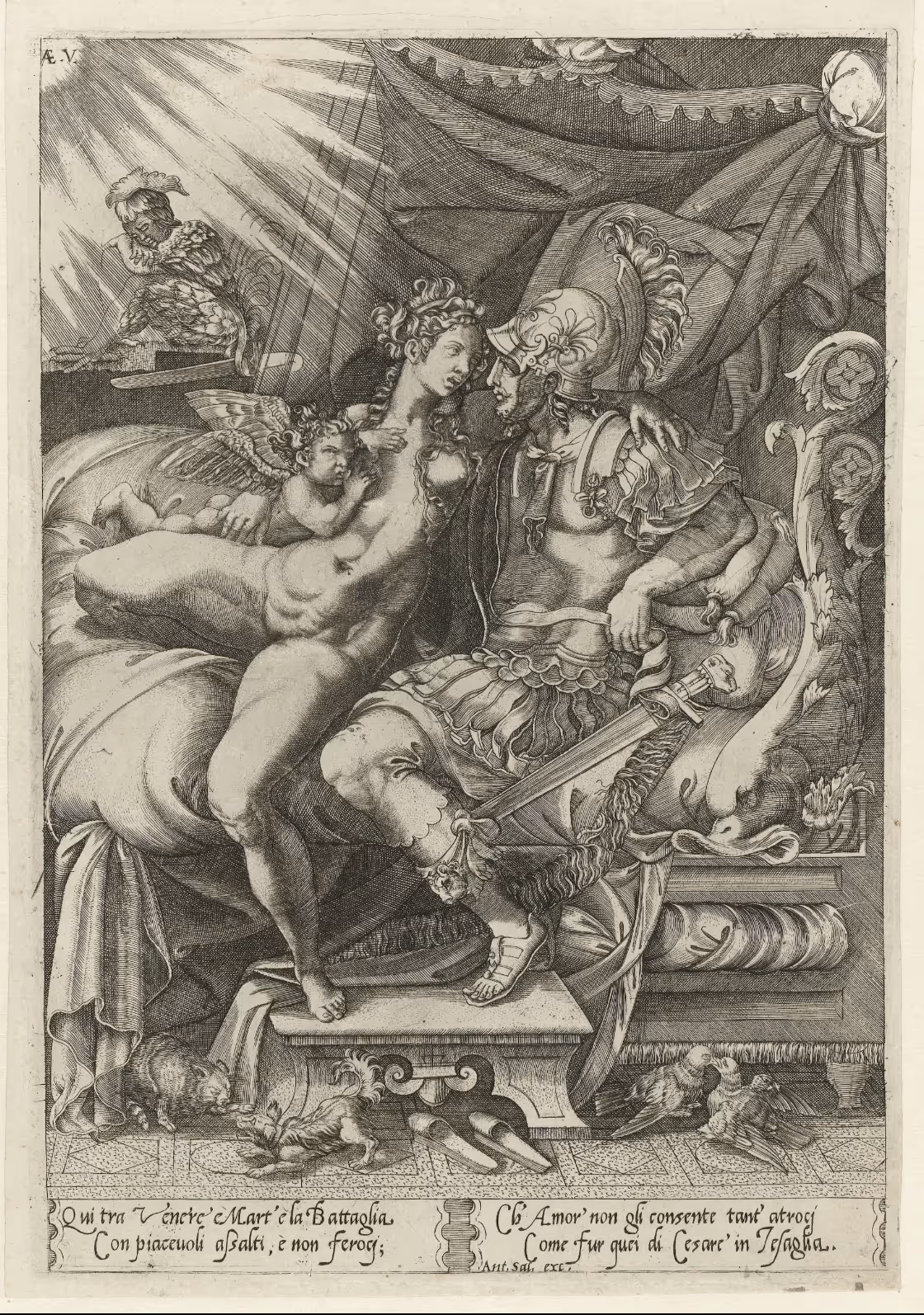 Mars en Venus als geliefden, Enea Vico, after Giovanni Battista Scultori, 1533 - 1567. - source Rijksmuseum