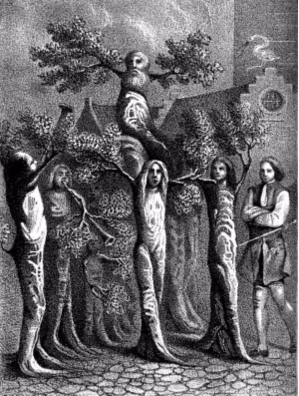 Johan Frederik Clemens, Illustration after drawing by Nicolai Abraham Abildgaard, from: Holberg, Ludvig. Niels Klim’s Journey under the Ground; Being a Narrative of His Wonderful Descent to the Subterranean Lands; Together with an Account of the Sensible Animals and Trees Inhabiting the Planet Nazar and the Firmament (1741). Translated by John Gierlow. Boston : Saxton, Peirce & Co.; New York, Saxton & Miles, 1845.