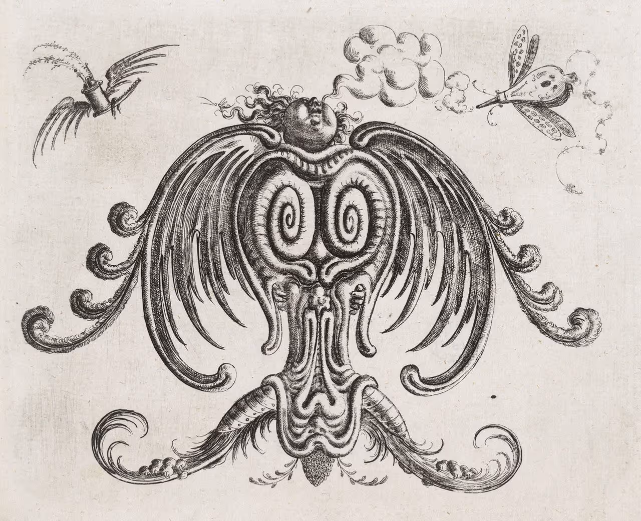 Christoph Jamnitzer, Sheet from the the Neuw Grotteßken Buch, 1610, etching. (© Trustees of the British Museum.) - Source.