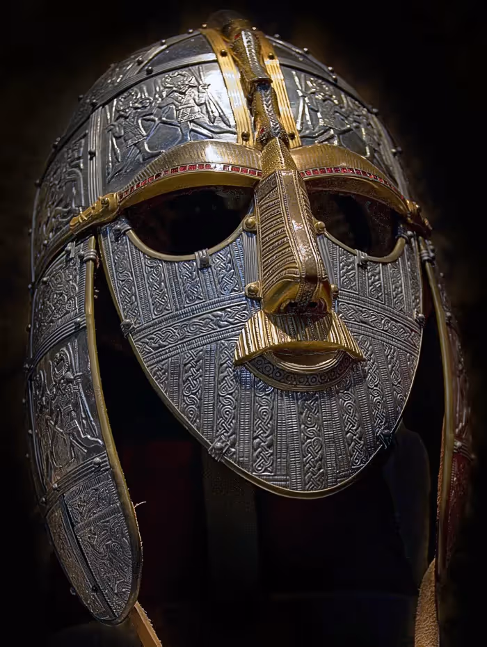 The reconstructed Sutton Hoo parade helm that may have been worn by King Raedwald of the East Aengle