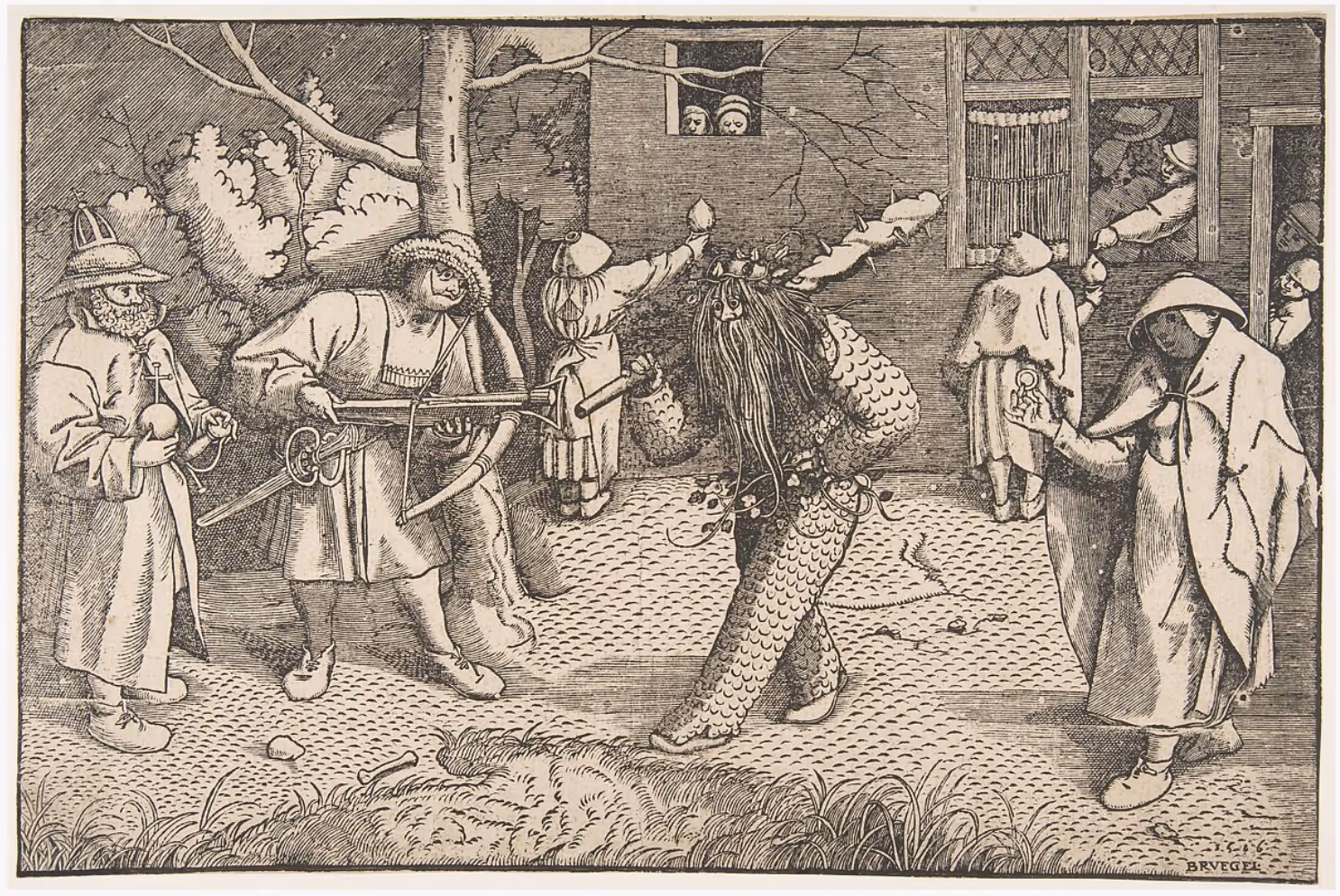The Wild Man or the Masquerade of Orson and Valentine, Anonymous, 16th century, Netherlandish After Pieter Bruegel the Elder 1566, https://www.metmuseum.org/art/collection/search/338704. SEE ARMOUR ATHENE