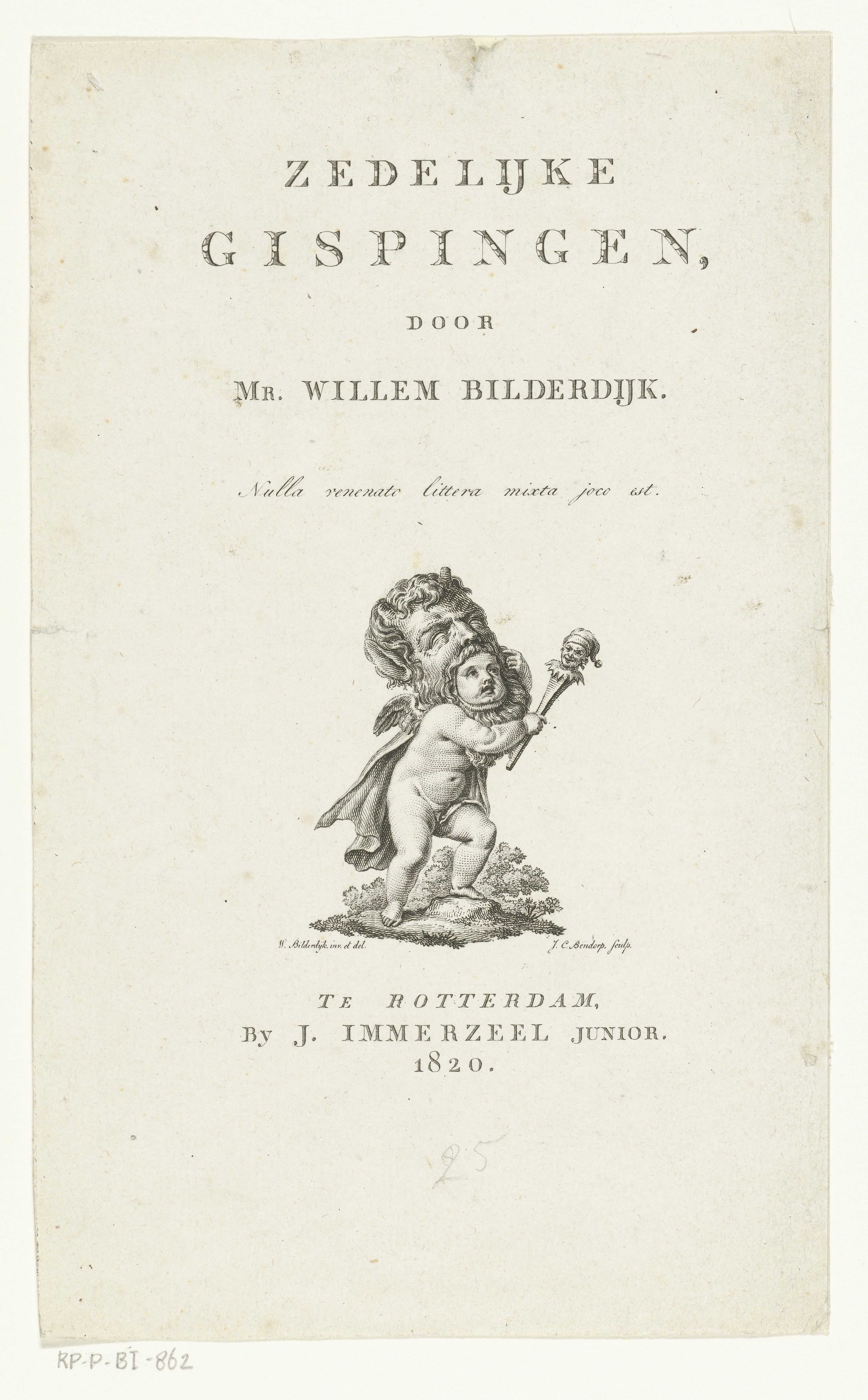 Titelpagina voor: W. Bilderdijk, Zedelijke Gispingen, Rotterdam 1820, Johannes Christiaan Bendorp, after Willem Bilderdijk, 1820. Source Rijksmuseum
